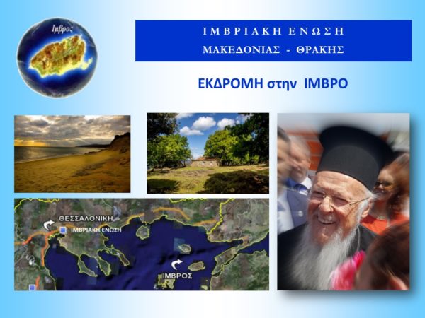 Μεγάλο αφιέρωμα στην Ίμβρο στο Ραδιοφωνικό Σταθμό της Εκκλησίας της Ελλάδος Από τη Δευτέρα 1/7/2019 και κάθε ημέρα μέχρι την Παρασκευή 12/7/2019 (εκτός Σαββατοκύριακου) μεταξύ 17:00-18:00 η δημοσιογράφος Σμαραγδή Καράγιωργα θα πραγματοποιήσει σειρά συνεντεύξεων που θα παρουσιάζουν διαφορετικές πτυχές της Ίμβρου (ιστορία, λαογραφία, πολιτική κ.α.). Παρακάτω παραθέτουμε το πρόγραμμα των εκπομπών: 1. Δευτέρα 1/6/2019: Ιστορία νήσου από την αρχαιότητα μέχρι σήμερα, Γιώργος Ξεινός, είναι Άρχων Προστάτης των Γραμμάτων τού Οικουμενικού Πατριαρχείου, διηγηματογράφος, δοκιμιογράφος και συγγραφέας ιστορικών μελετών, όπως: «Ίμβρος και Τένεδος ιστορία παράλληλη», «Τετράδιο Βιογραφίας»(αναφορά στον Οικουμενικό Πατριάρχη κ.Βαρθολομαίο), «Τώρα επιστρέφοντας». Είναι ο ιδρυτής και πρώτος πρόεδρος τής «Εταιρείας Μελέτης Ίμβρου και Τενέδου», έχει διατελέσει επίσης πρόεδρος τής «Εταιρείας Λογοτεχνών Θεσσαλονίκης» και πρόεδρος τής «Ιμβριακής Ένωσης Μακεδονίας-Θράκης» 2. Τρίτη 2/7/2019: Μνημεία (αρχαιότητα-Βυζάντιο – νεώτεροι χρόνοι),…