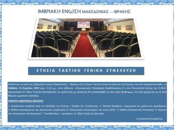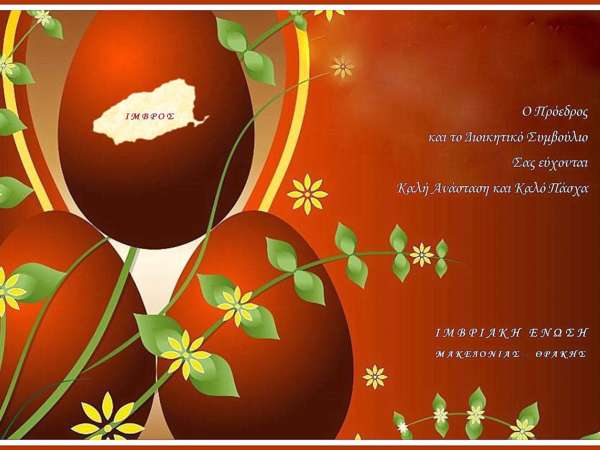 Εκδρομή στην Ίμβρο (23 – 26 Αυγούστου) Η Ιμβριακή Ένωση διοργανώνει εκδρομή στην Ίμβρο, τον Αύγουστο παρουσία του Οικουμενικού Πατριάρχη κ.κ. Βαρθολομαίου. Τρεις διανυκτερεύσεις σε ξενοδοχείο στην Παναγία, την πρωτεύουσα του νησιού. Το πλήρες πρόγραμμα θα ανακοινωθεί τις προσεχείς ημέρες. Ξεναγήσεις: στα επαναλειτουργούντα – μετά από μισό αιώνα – Σχολεία της Ίμβρου (Νηπιαγωγείο, Δημοτικό, Γυμνάσιο, Λύκειο), στη Μητρόπολη, στο Μουσείο του Πατριάρχη, στα Ελληνικά χωριά κ.ά. Στην επιστροφή επίσκεψη στην Καλλίπολη. Δηλώσεις συμμετοχής μέχρι την Τετάρτη 31 Ιουλίου 2019. Αναχώρηση: Παρασκευή 23 Αυγούστου, ώρα 8π.μ., από την Ιμβριακή Ένωση. Επιστροφή: Δευτέρα βράδυ, 26 Αυγούστου. Τιμή κατ’ άτομο (με πρωινό): Σε δίκλινο: 195 €, Σε μονόκλινο: 225 € Για μέλη μας 180 € και 210 € αντίστοιχα Μόνο μεταφορά 100 € Ξενοδοχείο OZBEK, δίπλα στο καφέ…